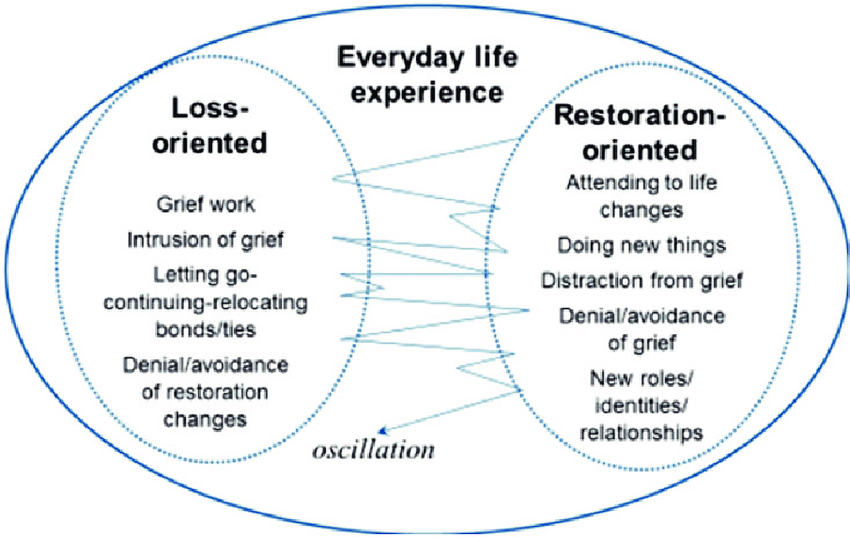 None of us can grieve 24 hours a day so we oscillate between Loss and Restore. We may only stay on the restoration side for an hour or so, but that doesn’t matter. It gives us a break from being emerged in grief.